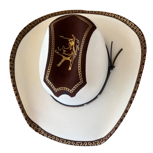 Cowhide Rancher Cowboy Hat - White & Tan Patches