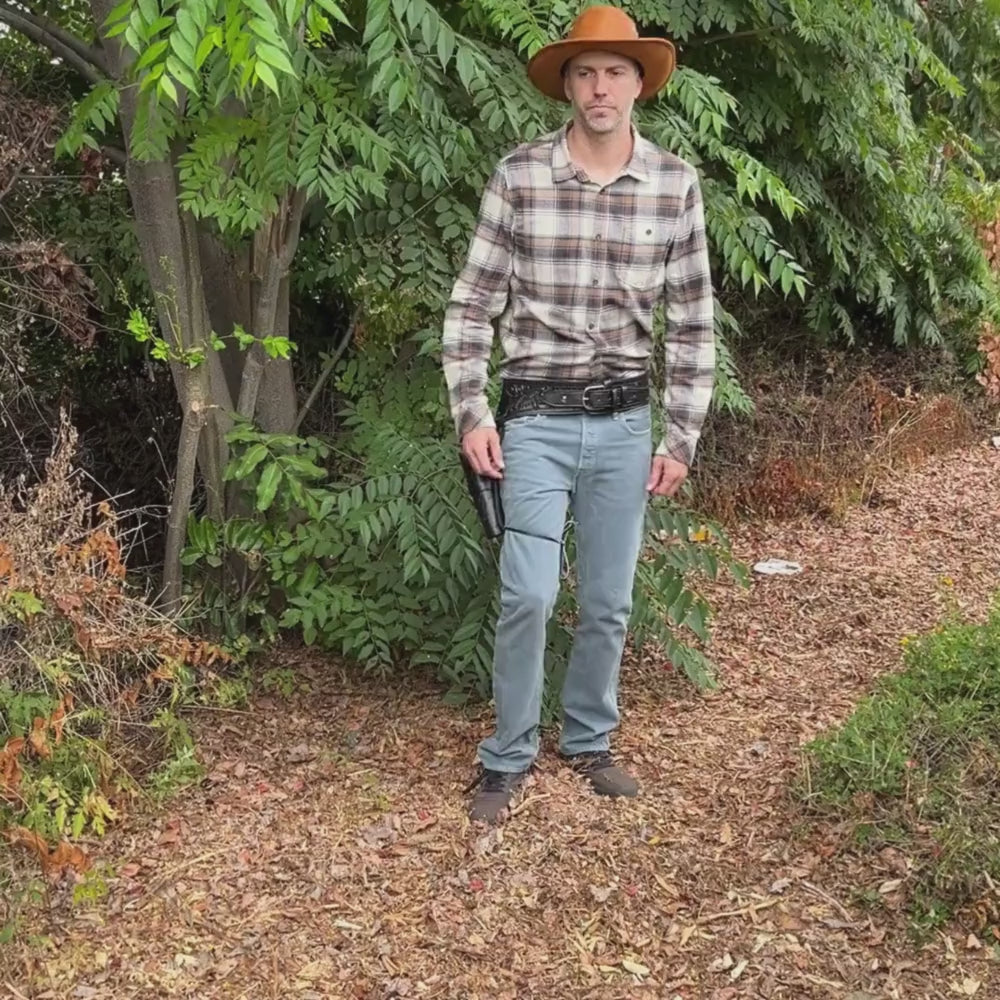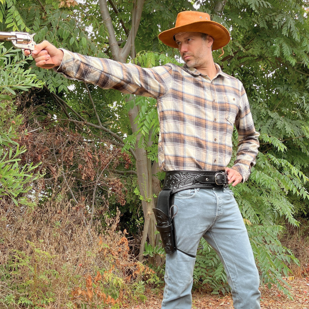 - Genuine, handmade western leather Cowboy gun holster belt.