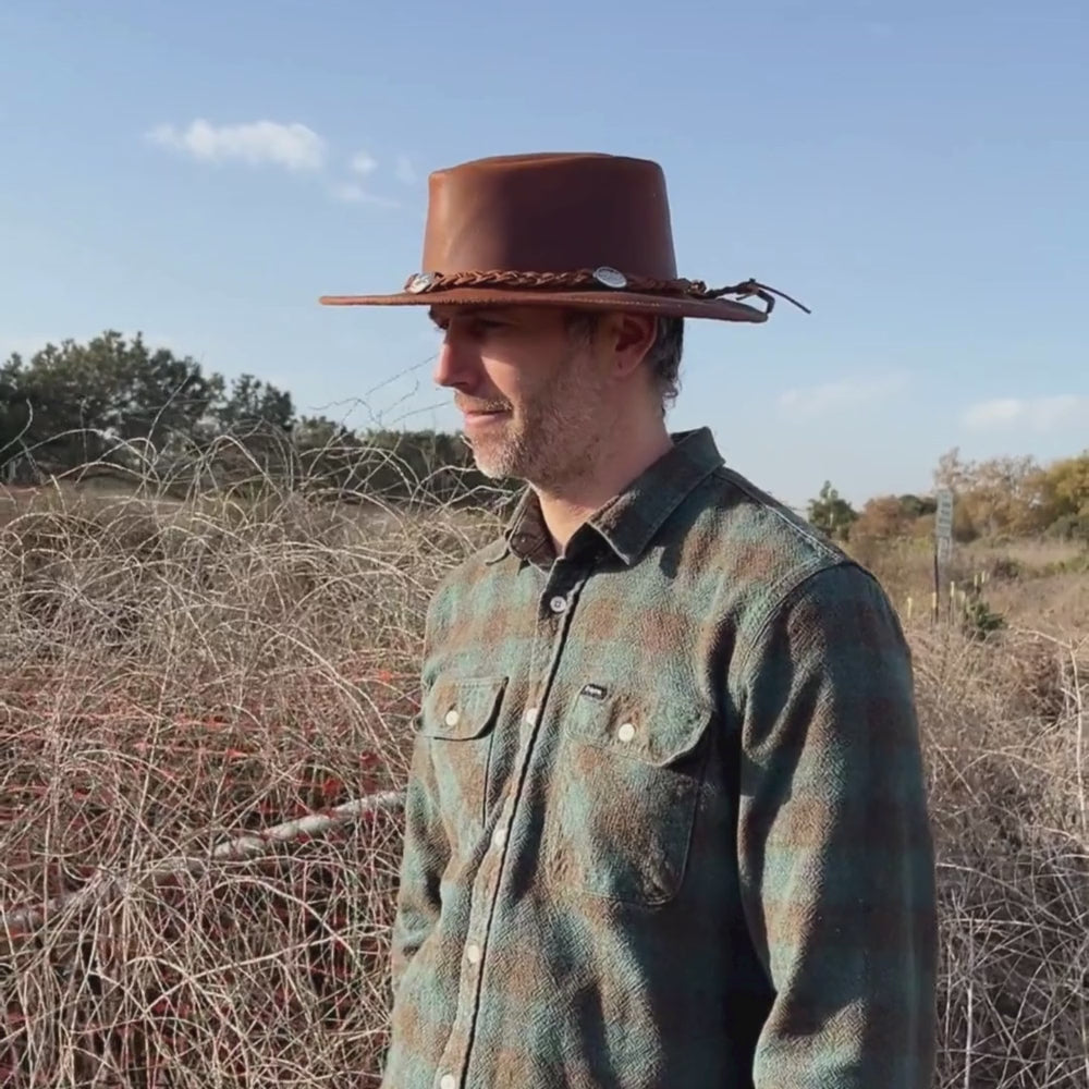 This Leather Cowboy Hat is hand-crafted in Mexico. Our Leather Full Brim Hat in classic brown is the perfect accessory for any outdoor adventure. Made from high-quality leather, this hat offers superior sun protection while adding a touch of rugged style to your wardrobe. Embrace your inner explorer with this timeless and durable piece.